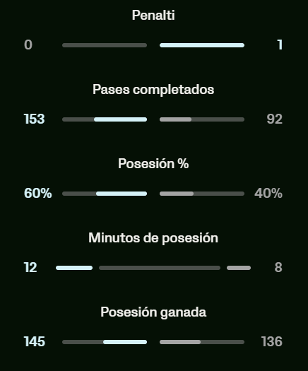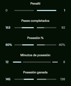 UN INFORME ESTADISTICO DEL PARTIDO DE TIROS AL ARCO, TIROS LIBRES, TIROS DE ESQUINA, POSESION Y MUCHO MAS